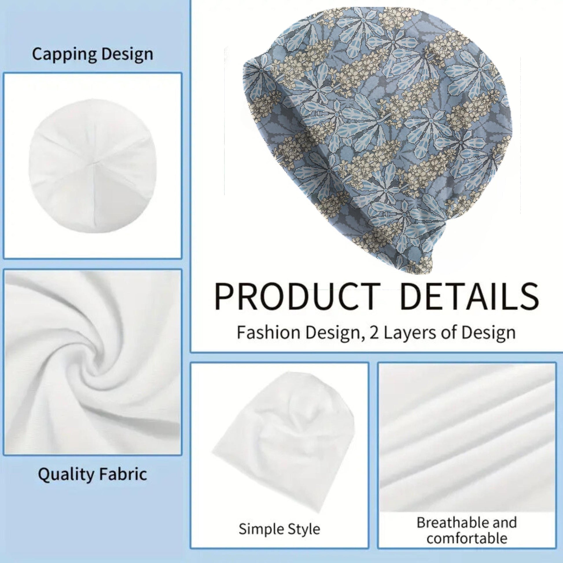 This Art Nouveau Chestnut Tree beanie draws inspiration from the botanical works of Maurice Pillard-Verneuil, featuring soft blue chestnut leaves and delicate ivory blossoms. A dreamy, vintage-inspired floral design with gentle elegance and calm charm.