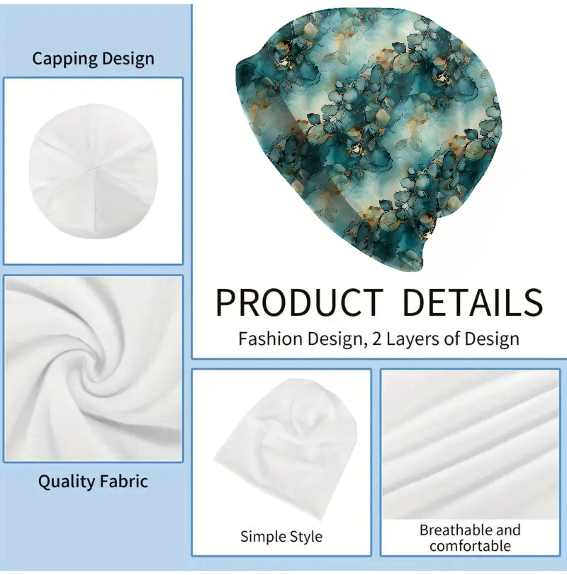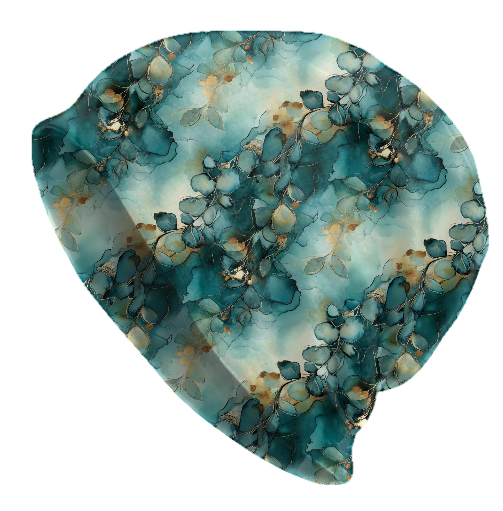 Botanical Vines Slouchy Beanie – Teal Floral Bonnet, Soft Thin Stretchy Skull Cap for Men & Women, Watercolor Nature Print Hat