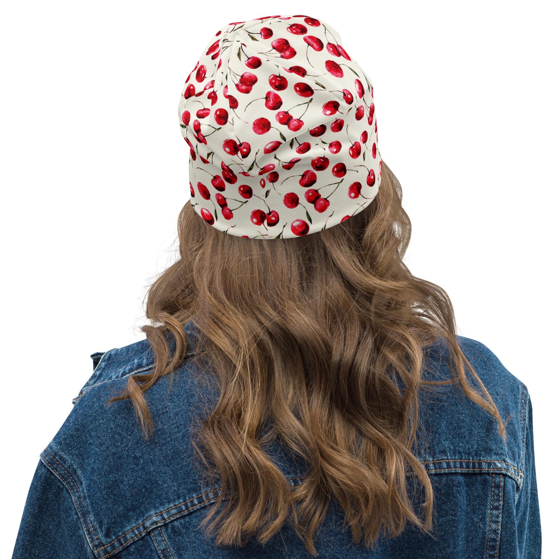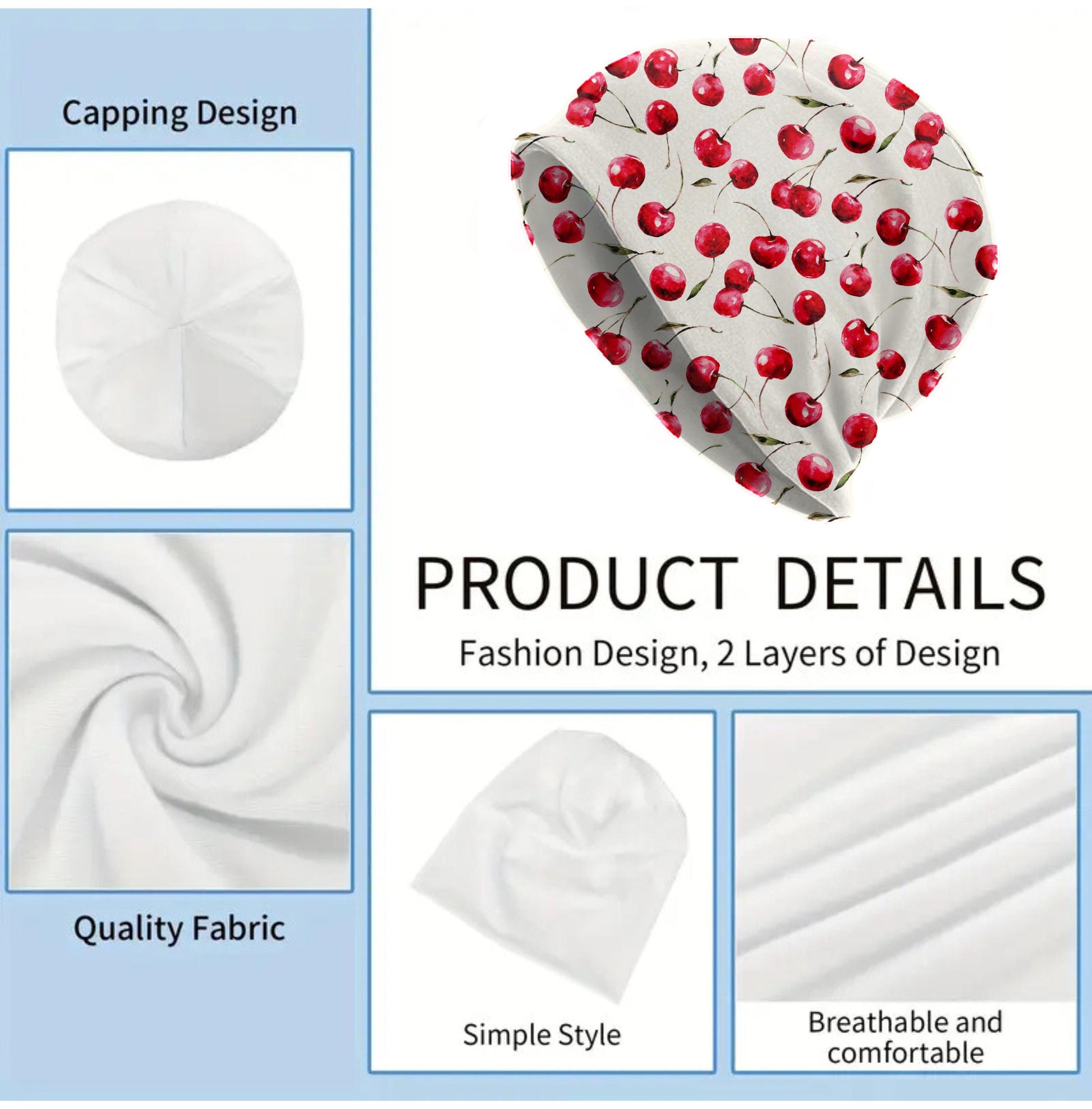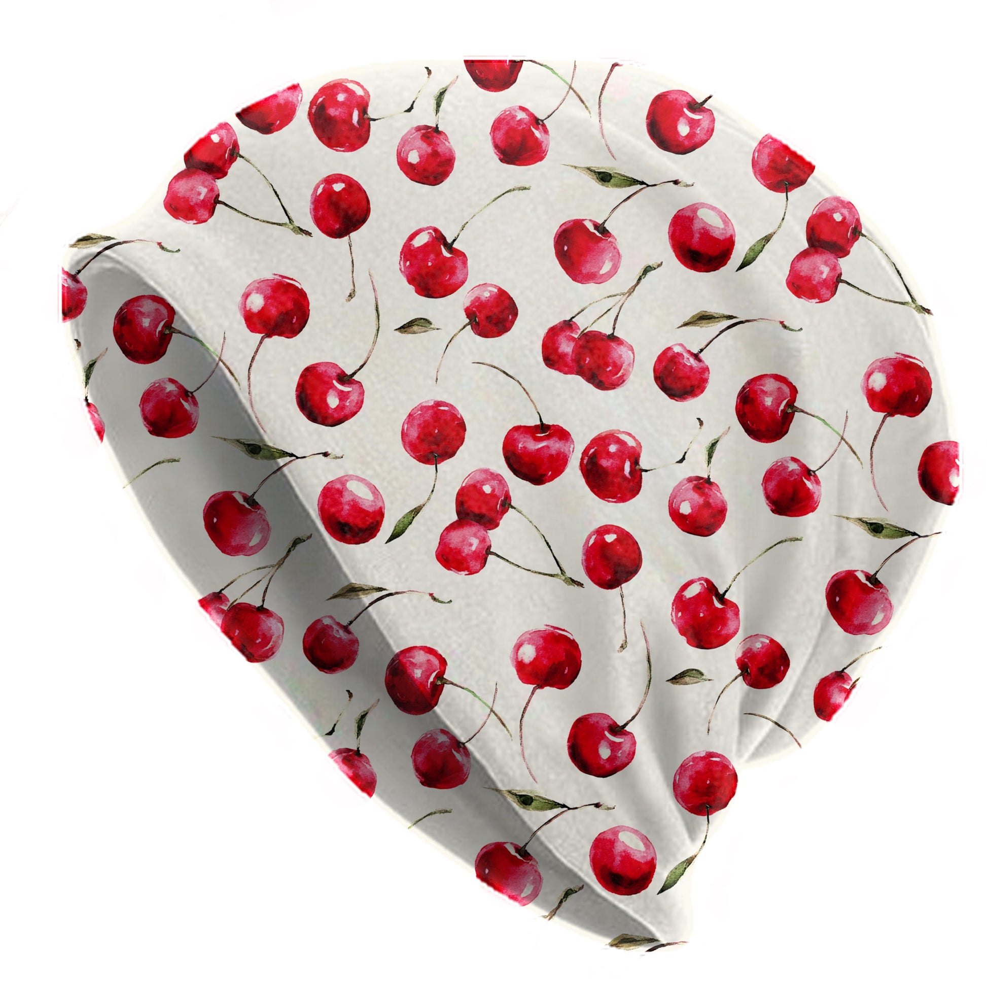 Cherry Watercolor Slouchy Beanie – Thin Stretchy Lightweight Skull Cap for Men and Women
