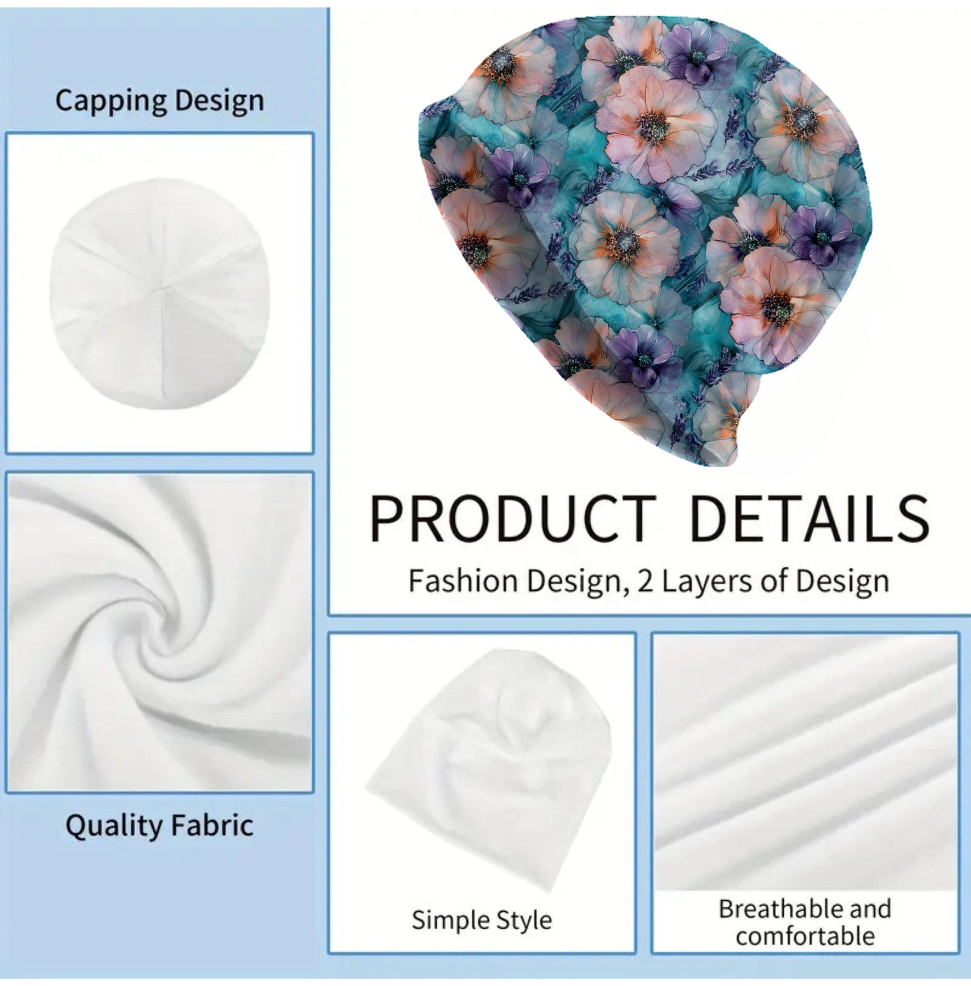 Designed for men and women, this slouchy bonnet-style beanie adds a fresh floral touch to everyday outfits, boho wardrobes, cottagecore looks, or nature-inspired fashion.
