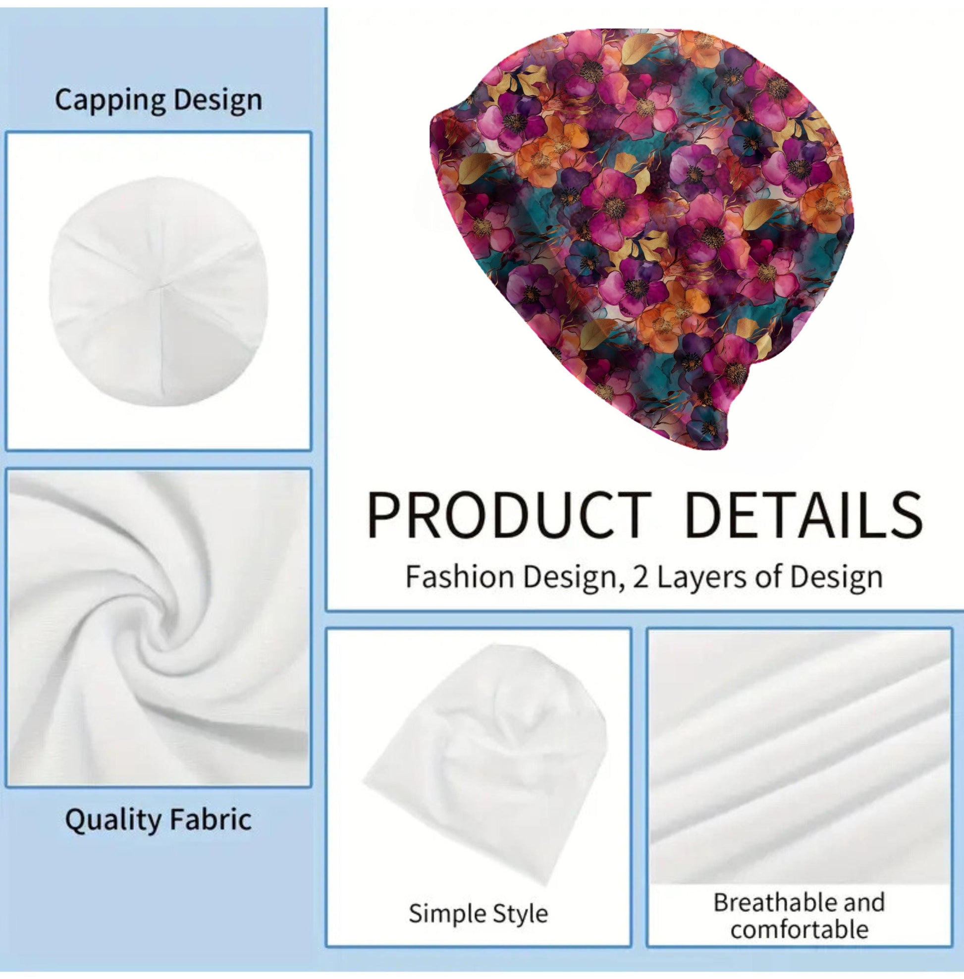 The hat is soft, lightweight, thin and stretchy, offering breathable comfort without bulk. It is not a thick or chunky knit beanie. Instead, it has a smooth, flexible drape suitable for year-round wear. The artwork is created with high-quality sublimation printing, permanently infused into the fabric so it will not peel or crack.