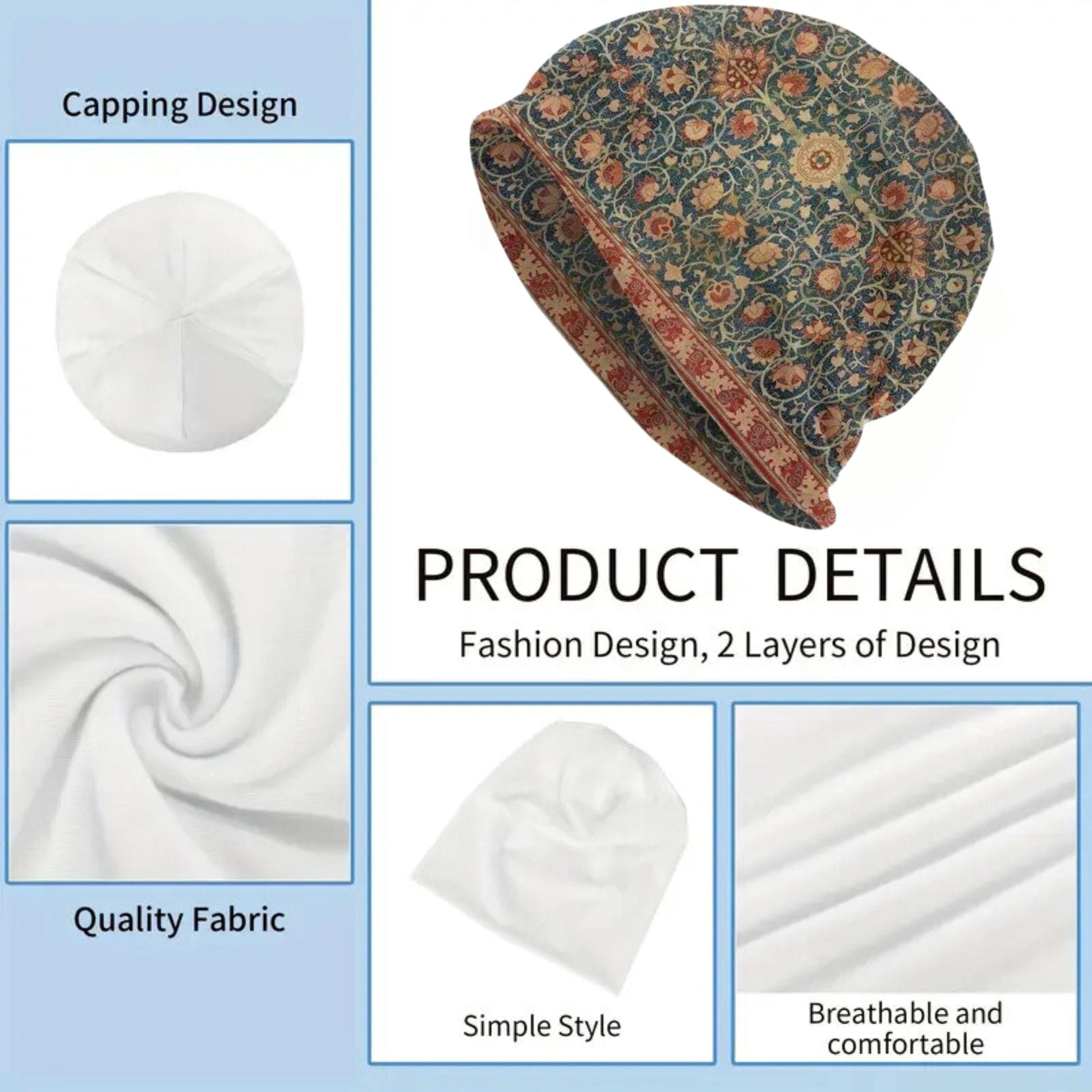 Mens Beanie Womens Floral Pattern Summer Hat Beanie Headwear Lightweight Beanie Skull Cap Bonnet Vintage Style Skully Wildflowers Red Green