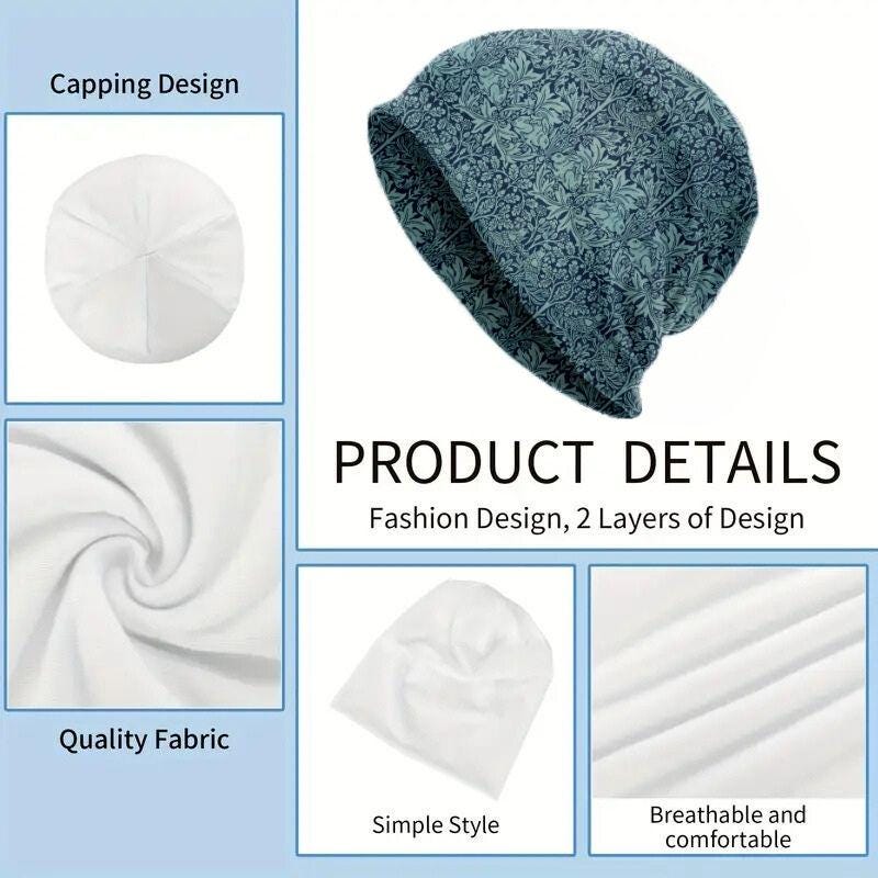 Slouchy Beanies Boho Beanie Bohemian Skull Cap Thin Soft Caps Boho Hats Lightweight Bonnet Hat Hippie Soft Stretchy Eagle Botanical Rabbit