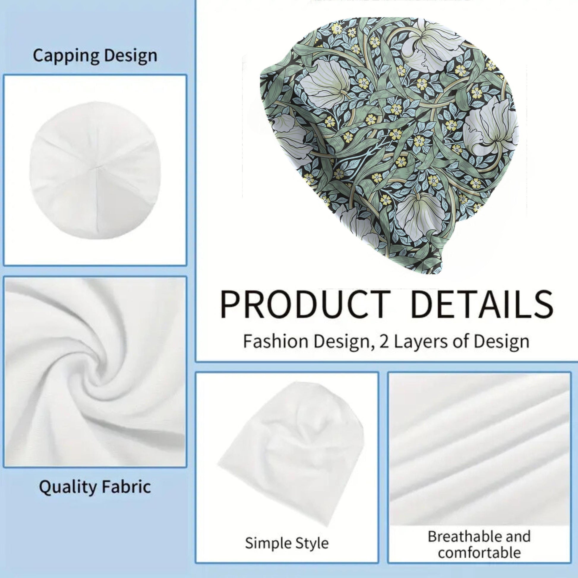 Wrap yourself in timeless style with this Art Nouveau-inspired floral beanie. Featuring a lush botanical print reminiscent of William Morris designs, this soft and breathable slouch hat adds a touch of vintage elegance to any outfit. Perfect for year-round wear, bad hair days, or migraine relief, this beanie combines comfort with artistic flair.