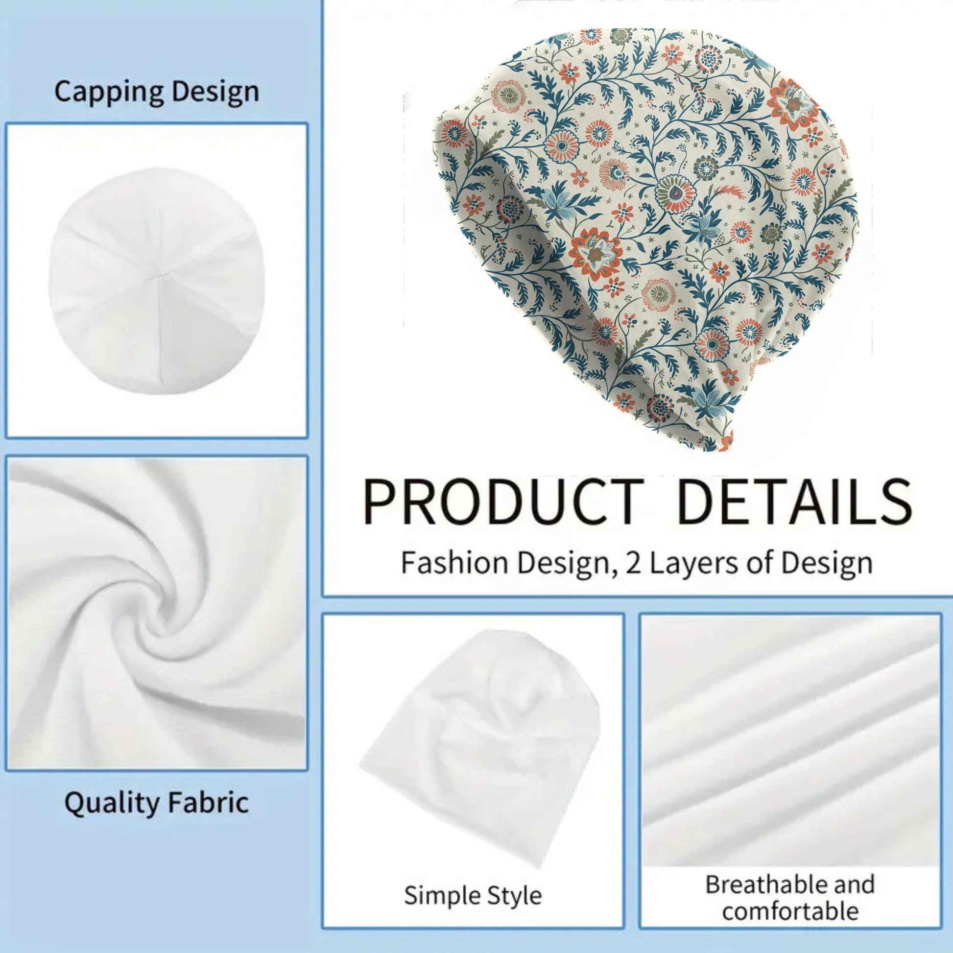 Thin Folk Art Floral Slouchy Beanie – Vintage Botanical Skull Cap, Soft Breathable Beanie Hat for Men & Women, Fall and Spring Beanies