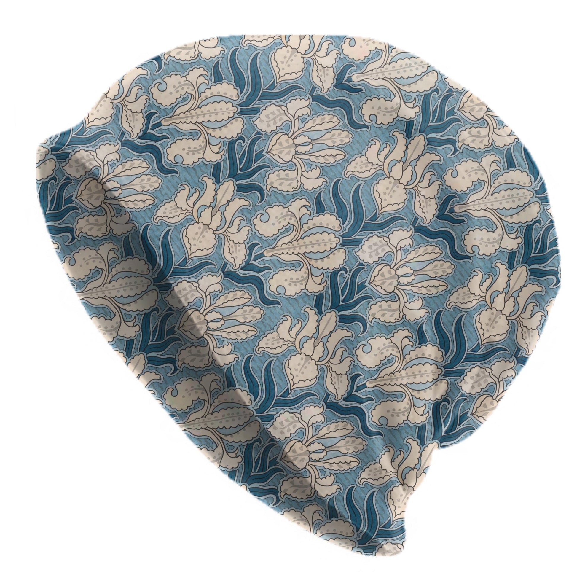 Thin Maurice Pillard Iris Beanie – Vintage Art Nouveau Floral Slouch Hat, Blue Botanical Cap, Soft Lightweight Beanie