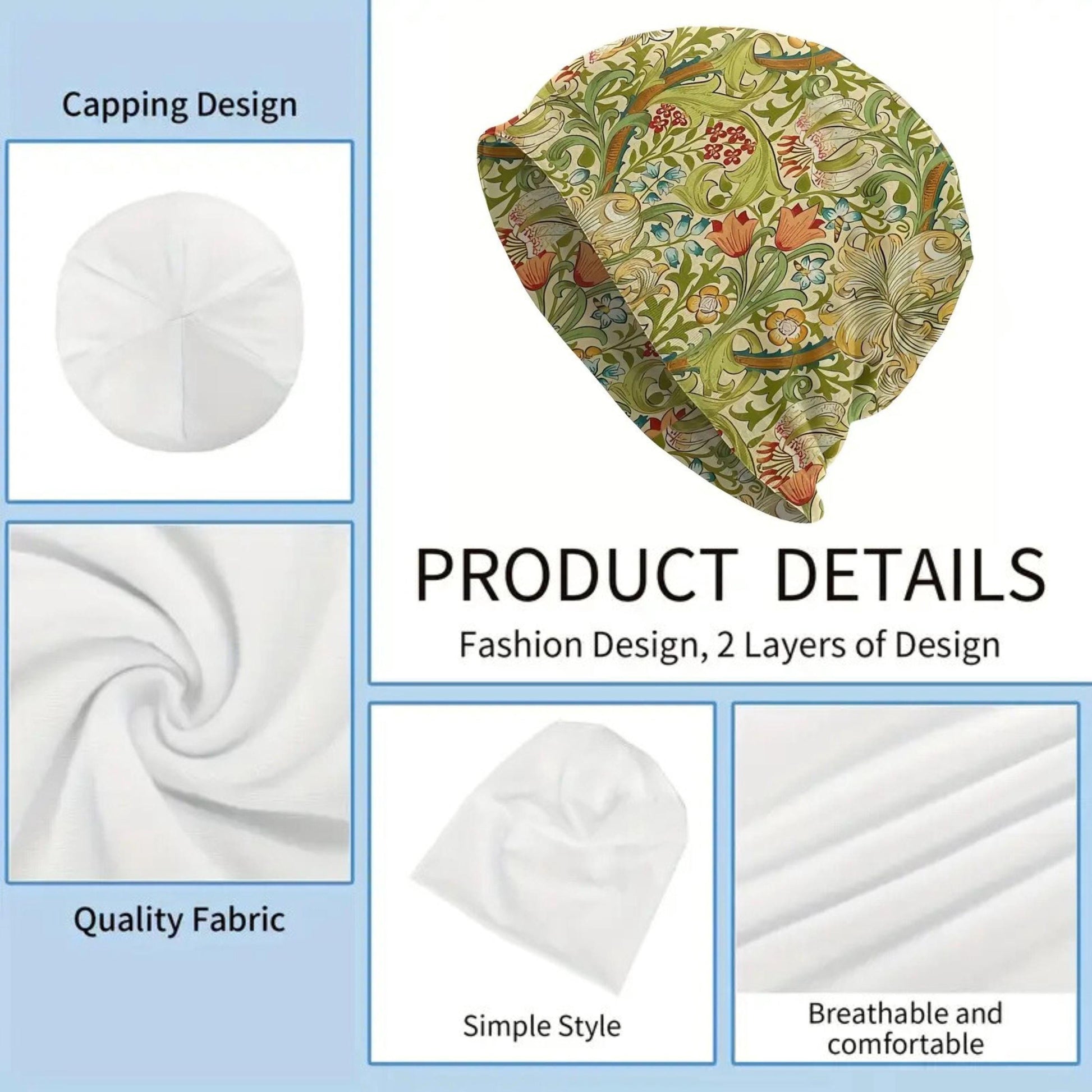 Thin Slouchy Beanies Boho Beanie Skull Cap Thin Soft Caps Boho Hats Bonnet Hat Hippie Stretchy Floral Beanie William Morris Intricate Floral